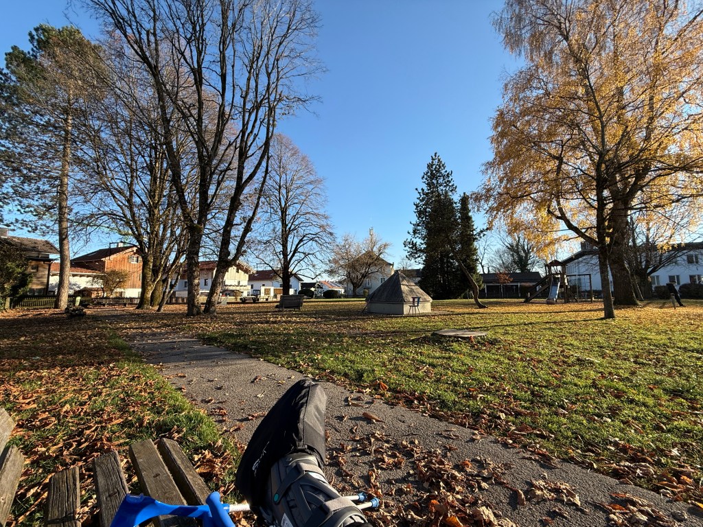 Still, it was a comfortable enough journey and definitely doable; gave me time for a coffee in the hospital café when I got there too, so there’s that :)! I was also grateful for one of the ‘accessories’ I’d picked up at a local medical supply store: although it wasn’t actually raining (I’ve been lucky there too, with mostly dry, even mostly sunny weather since the accident!), there were damp leaves everywhere on the floor (‘cos it’s, like, autumn, of course :)!). Pictured below already pulled over the VACOped boot, it has a velcro strap on the front and a pull-tie on the back; on the bottom there are loads of kind of rubber bumps which help it grip … for the upcoming winter here in Bavaria absolutely indispensable!! (https://valife.de/orthesenuberschuh-3.html – 30€)