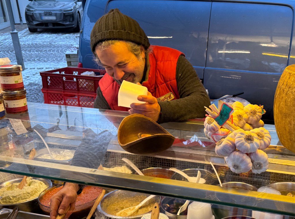 So as I headed out to the weekly market, I was very glad of the VACOped boot cover. In fact, I just ordered a second one yesterday (along with a third inlay plus another 5 socks), as I’m sure it’s going to end up getting wet inside due to snow or slush sooner or later … plus, the first signs of wear’n’tear on the sole are appearing: