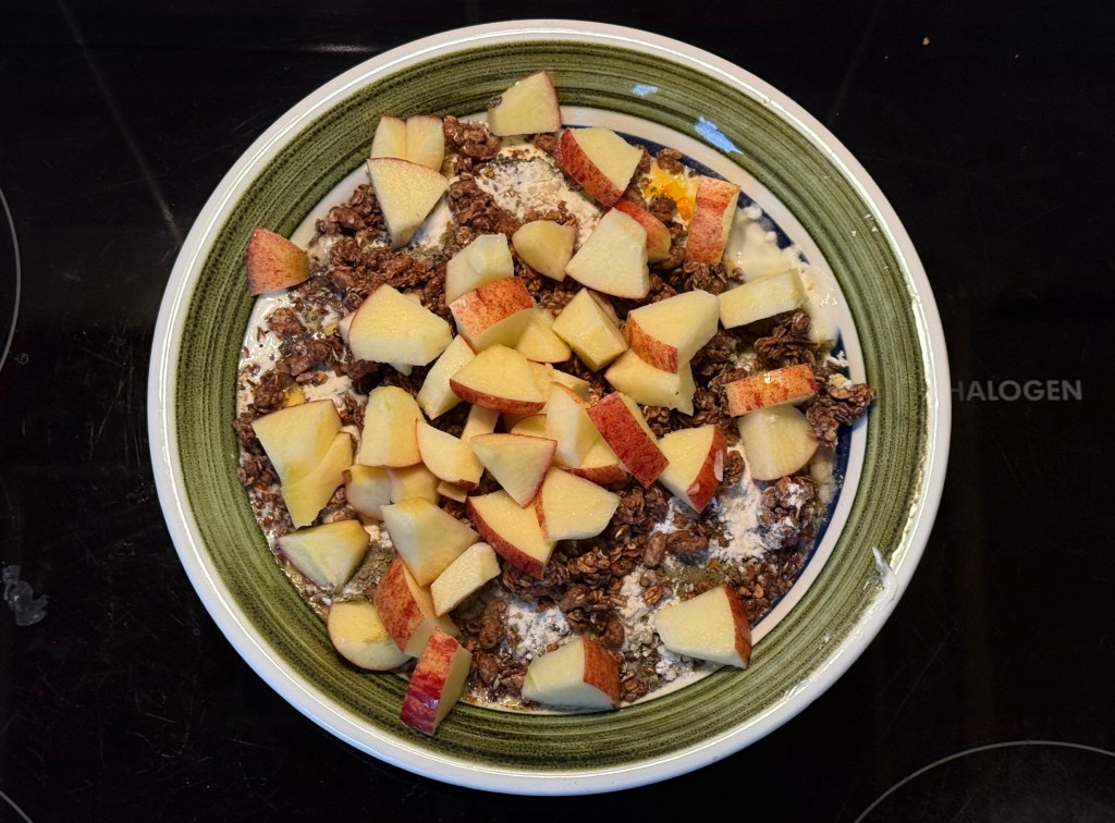 Wednesday: A more relaxed start to the day – ‘Buß- und Bettag’ (Day of Repentance and Prayer) is a school holiday in Bavaria … although my 15 yr old still had to go due to choir practice (for whatever reason moved from Monday 🙄), he at least didn’t have to be there until 10am. Thus we had chance for a chilled breakfast: my eldest son (who lives across the corridor with his girlfriend in a separate apartment) joined us; he and my eldest daughter tidied up / hoovered the living room afterwards, moved the sofa to give me space to walk ‘on camera’ … today was the date of the ‘onboarding’ video call with the USA Achilles tendon sport rehab specialist, Chris Smith: the living room has enough space for whatever walking / sitting / etc. views he’s going to want to see.