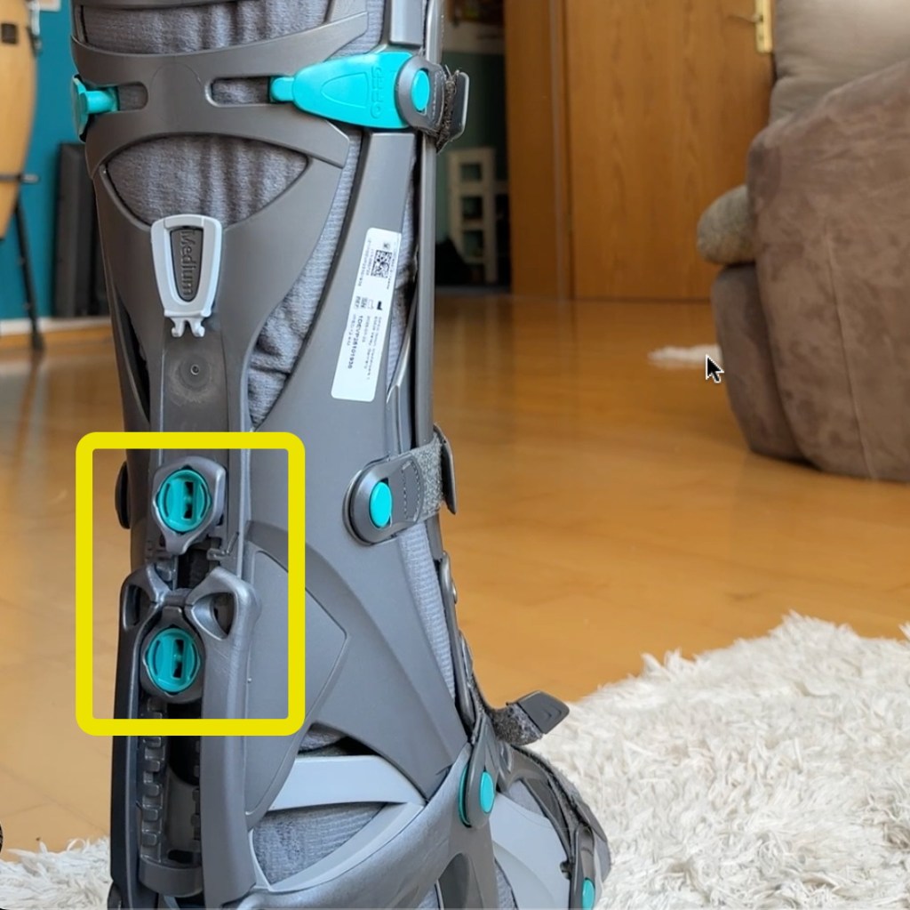 On top of that I am really struggling with the move from 25° to 20° in the VACOped. It’s just 5 fucking degrees, I keep thinking. And it’s only the beginning 🙈. Which is REALLY bugging me. I had thought it was going to be: try it out on Saturday a bit, ease myself in on Sunday and Monday off we go. The difference looks tiny (each notch representing 5° freedom of movement … but it still feels HUGE … and uncomfortable … kinda makes me a little-sick-in-my-stomach uncomfortable, difficult to explain.