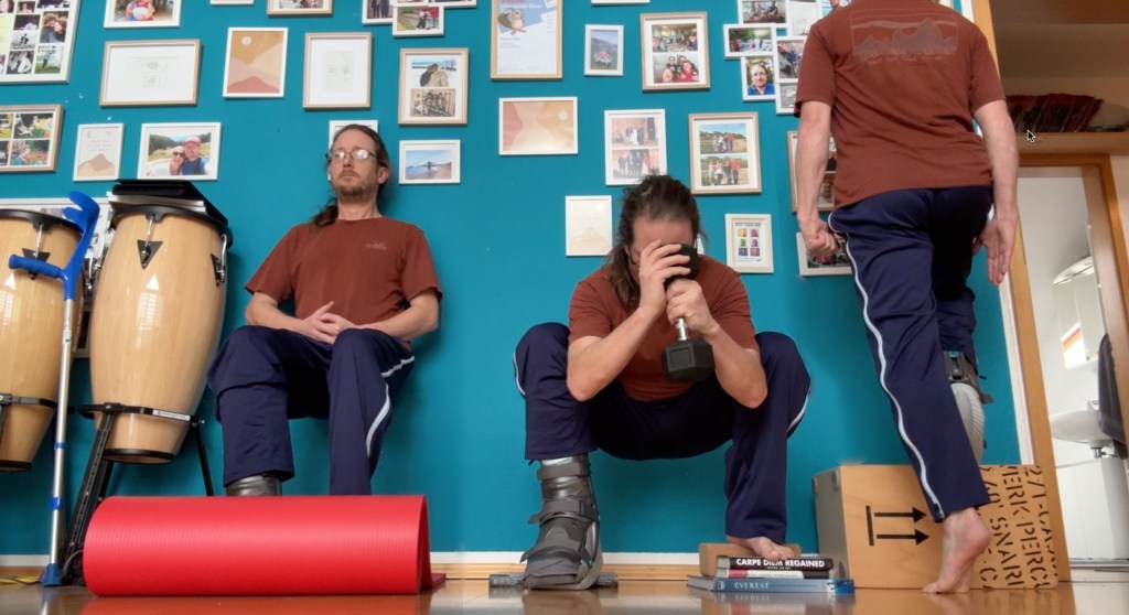 Wednesday: Today was a busy day … so busy, I pushed the ankle mobility routine back and back … and ended up dropping off to sleep without having done them. As I wrote to Chris: a) classic bad prioritising in the moment, leading to c) putting things off and off. I mean, I did some toe yoga and plantarflexion isos in the boot; I’m not going to beat myself up for ‘dropping that ball’ this one time … but I do need to find my routine.