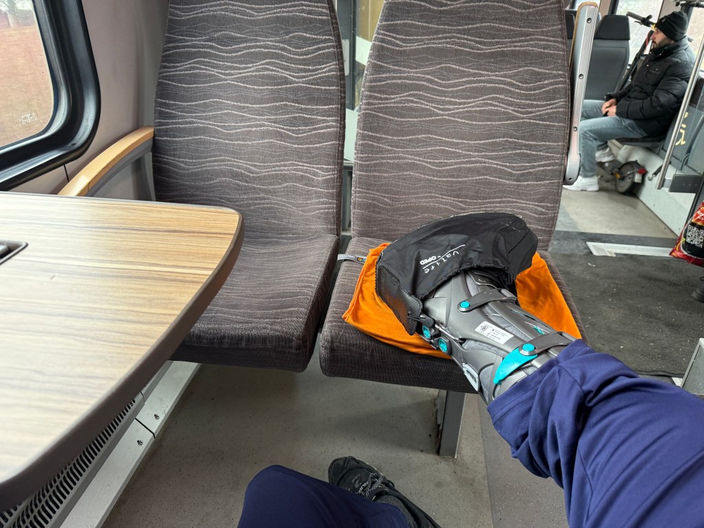 Milestone(s): After a few steps inside the apartment this morning, I finally managed to move the 25° setting on the VACOped ‘permanently’ to the 20°. After 6 freakin’ days of trying to get this far. Today, however, it really felt fine 🙏 … still going easy, still have the crutch and ‘feather’ occasionally outside (it’s icy, with some small amounts of snow here and there!), like when I was shopping and carrying two rucksacks of food (not heavy, but still a few kilos); I am not going back to 25° again, really no need 🥳🕺 .
