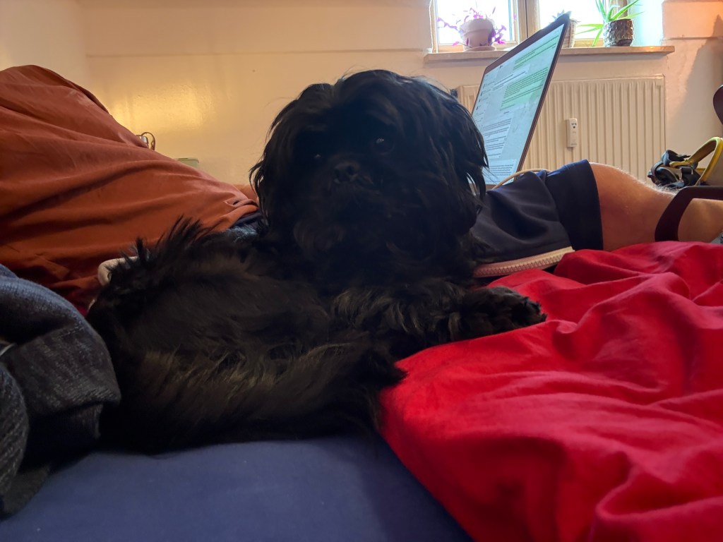 Friday: Decided I’m booking another day’s short-notice holiday today … last full day I have available not already planned in. That’s what this ‘spare one’ was for. Today, I had basically nothing planned – actually did around 2 hours of work, despite the day off, but just emails, plus, more importantly, going through some debugging at work (remote) with a colleague, all relaxed. So I figured, having had another day of screwed up sleep pattern yesterday, I was going to enjoy having our little doggo with me again (🥰), watch some Netflix, do some journaling, a little bit of shopping, laundry, cleaning, etc. and other than that, just take some time for myself.