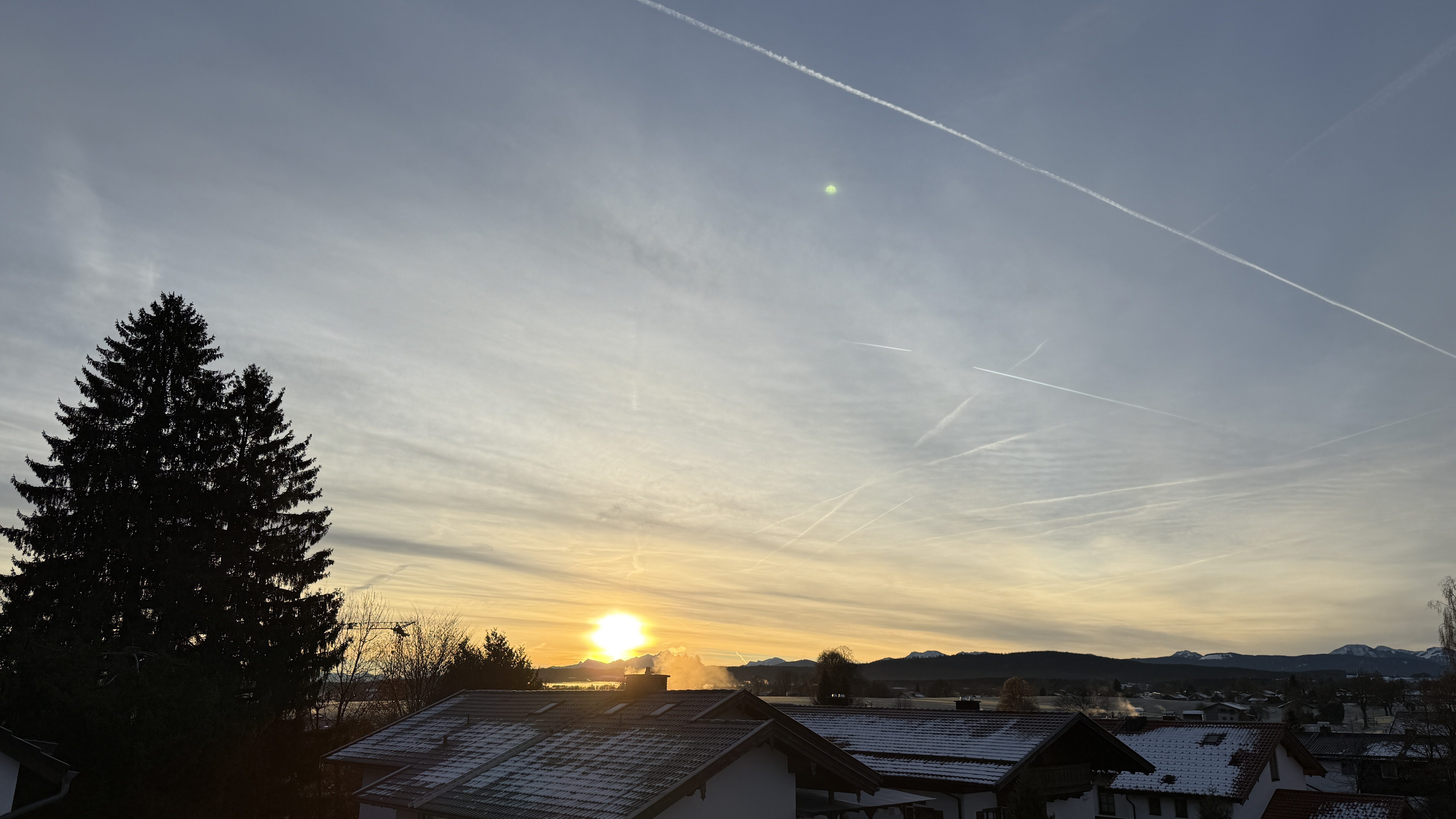 Sunday: Another ‘knackig kalte Nacht’ (crisp cold night) here in Bavaria … black ice here and there, but who gives a crap when you can’t drive anyway 🤪 😅 ?! Plus, it means I get a beautiful sunrise from my kitchen and bath roof windows (that’s the silver lining of living on the second floor of a two storey building in a low-rise area) … zoom in and look at the mountains in the distance, really golden!