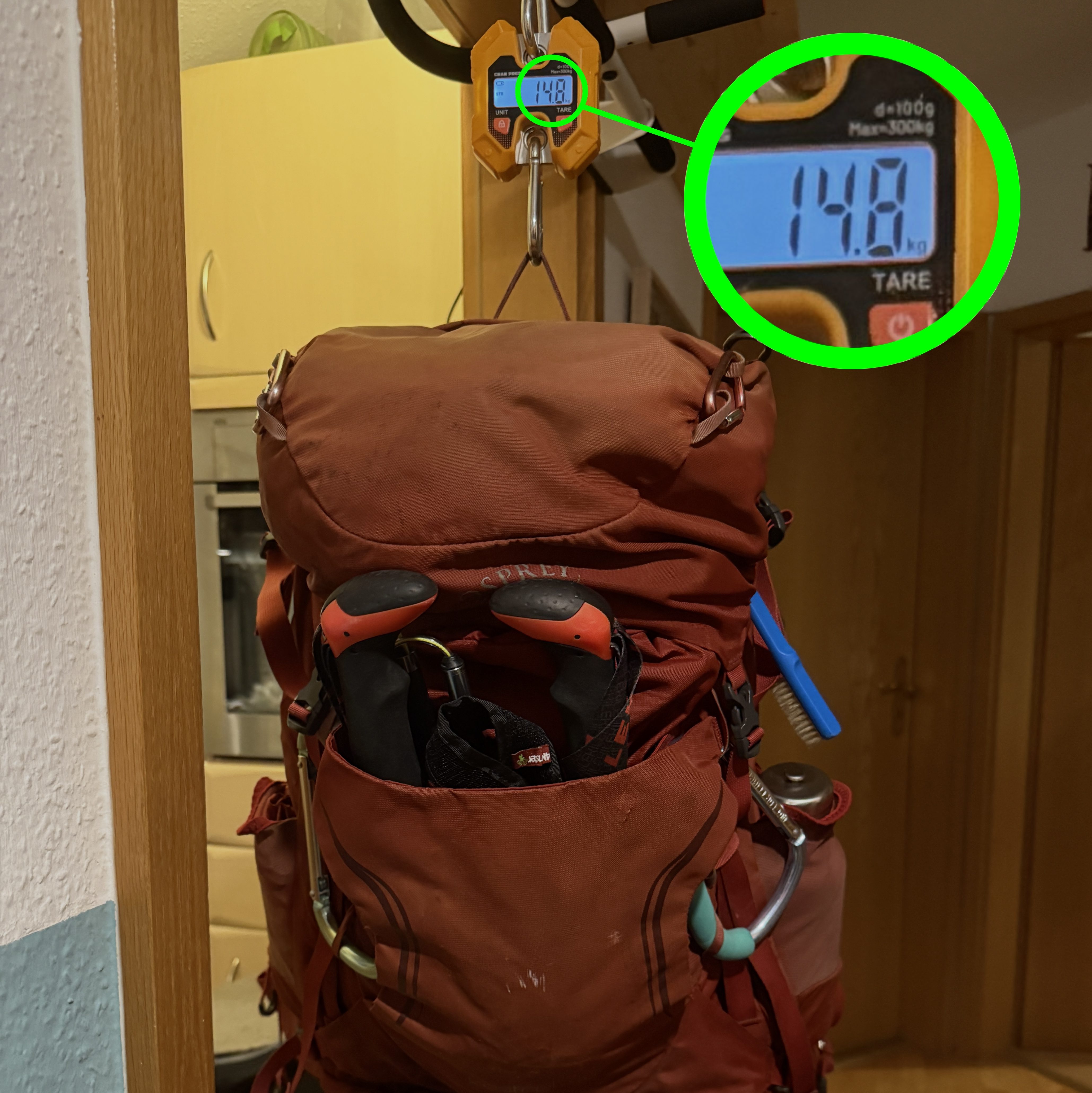 My rucksack – I had thought it was around 12-13kg … but I guess a few more things have crept into it in the last few weeks. And I do tend to take stuff ‘just in case’ … in many cases, because I didn’t before and then regretted it: I have a little camping stool – and it’s really small – which I have needed at least twice at times when I’d thought I could spare myself that extra half a kilo. Other stuff is much lighter … but it obviously all adds up.