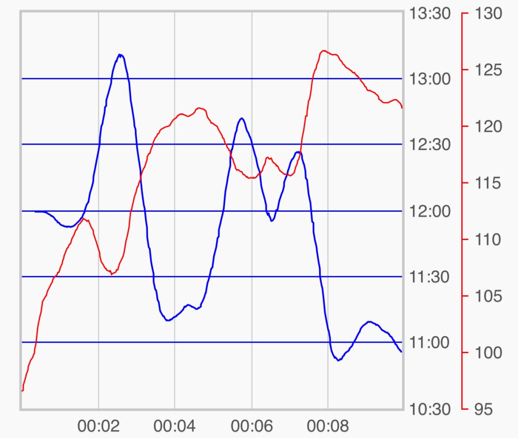 The street from the train station to the office is straight as an arrow; 900m of traffic, nothing nice to look at. Never used to bother me, was done and dusted in 8 mins or so; now it just never seems to end, dragging on and on for 15+ minutes. And then there’s the effort of it too … from my pulse you’d think I was doing an extended jog … and then you look at my pace and see I’m creeping along.