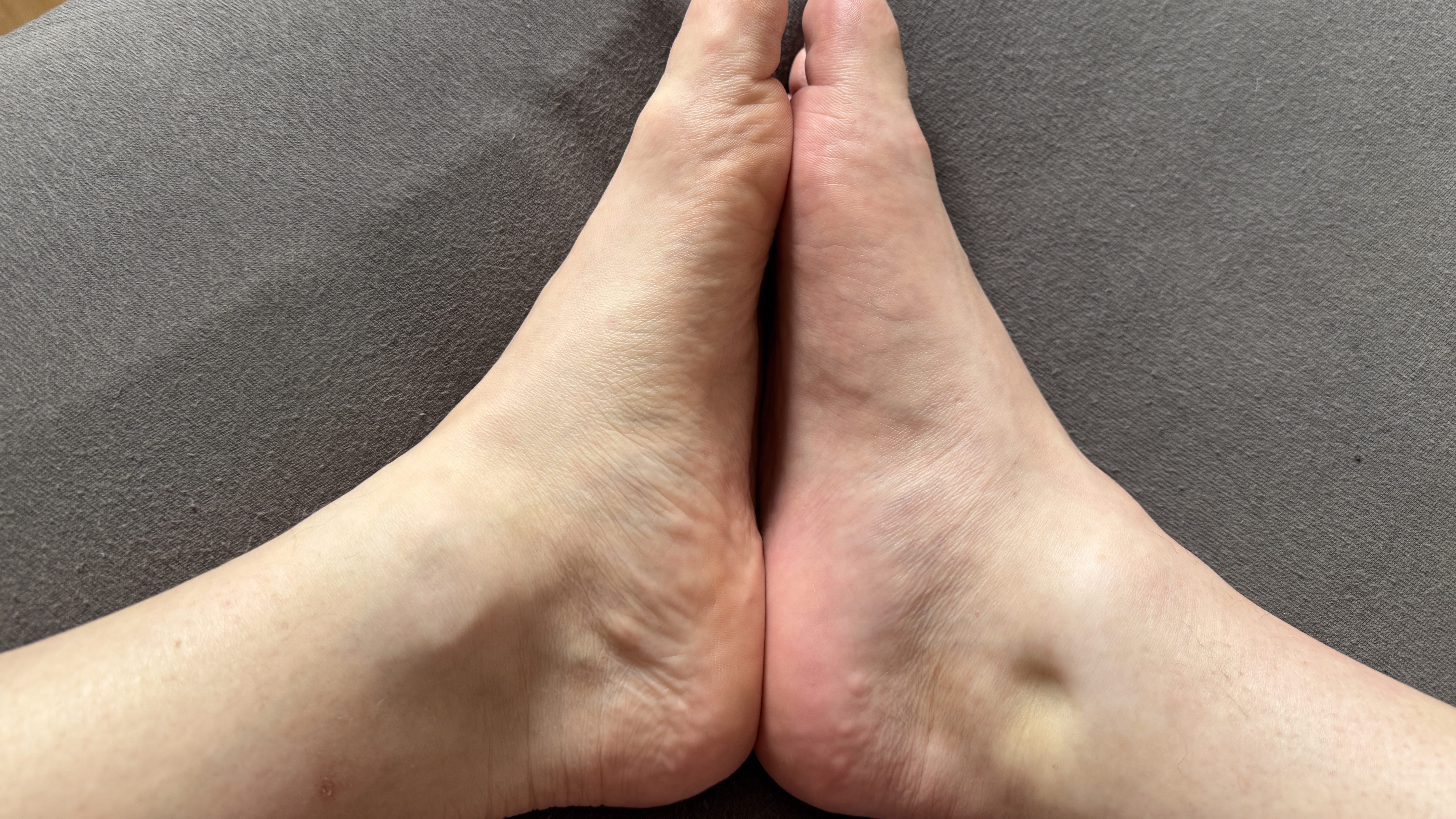 The swelling that was obvious yesterday evening had only partially subsided: the affected calf was back down from the 36cm I measured yesterday to the ‘normal’ atrophied 34cm. However, the ankle was as thick and swollen as the night before, which was kind of a first, I think. Quite obviously I’d overdone it with time on my feet/sitting without elevated foot – see that dent next to my right ankle? I pushed my thumb in, it went almost a cm in, I’d say, and the dent stayed ๐คข.